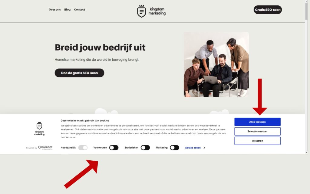 Jouw cookiebanner moet de juiste keuzes hebben voor gebruikers. Hierbij is het van belang dat de gekozen voorkeur ook daadwerkelijk doorkomt. De gratis cookiemeldingen van websites zijn (vaak ) niet goed genoeg meer.